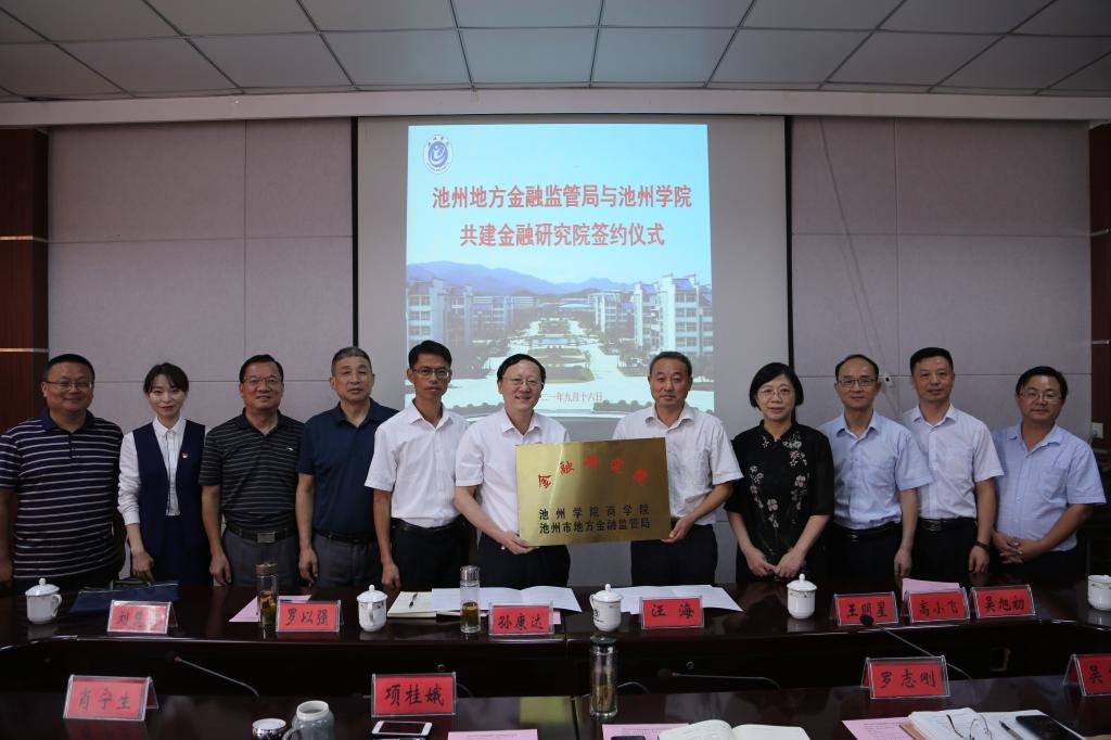 最后,池州学院纪委书记汪海与池州市地方金融监管局局长孙康达共同签署了《金融人才实习基地》和《金融研究院》合作共建协议,并举行了揭牌仪式。