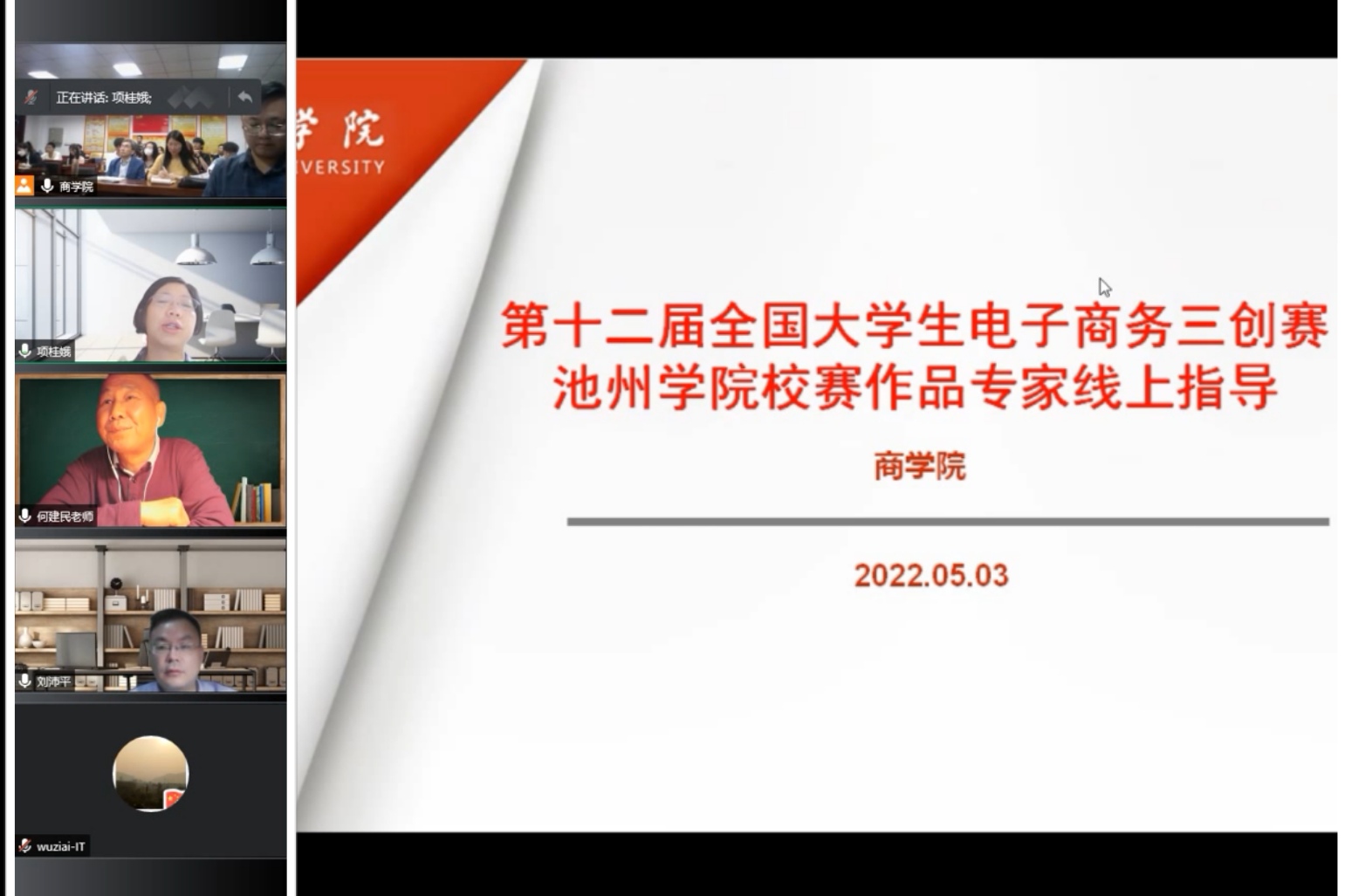 5月3日晚上,伟德国际1946bv官网在博识南二楼会议室举行第十二届全国大学生电子商务“三创”赛校赛作品专家线上指导。活动邀请了合肥工业大学管理学院教授何建民、合肥学院大学生创新创业教育中心主任刘沛平两位专家进行线上指导。活动由副院长吴自爱主持,院长项桂娥、校赛获奖团队和指导老师等参加了活动。