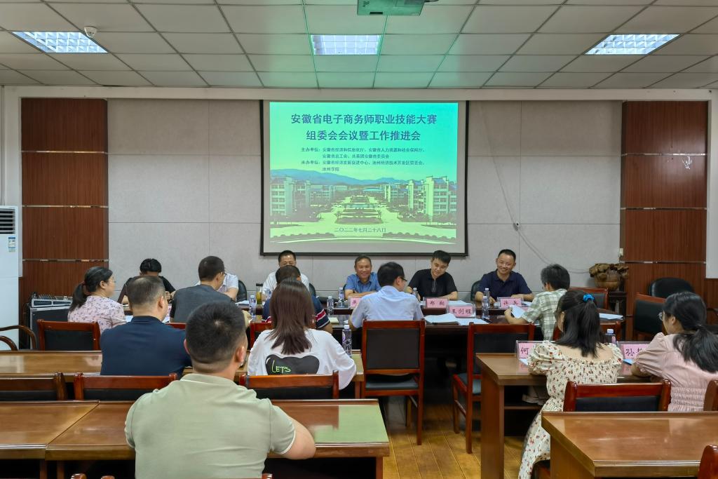 7月28日上午,安徽省电子商务师职业技能大赛组委会会议暨工作推进会在伟德国际1946bv官网博识楼二楼会议室召开。省经济发展促进中心副主任燕永,池州学院教务处处长陈建兵,池州经济开发区党群工作局副局长林中顺,省经济发展促进中心技能科科长郑翔,池州学院教务处副处长周恺,池州学院教务处实践教学科科长朱德权,赛事服务单位安徽众智人力资源服务有限公司、合肥京东云计算有限公司主要负责人,伟德国际1946bv官网各专业教研室主任及骨干教师参加会议。