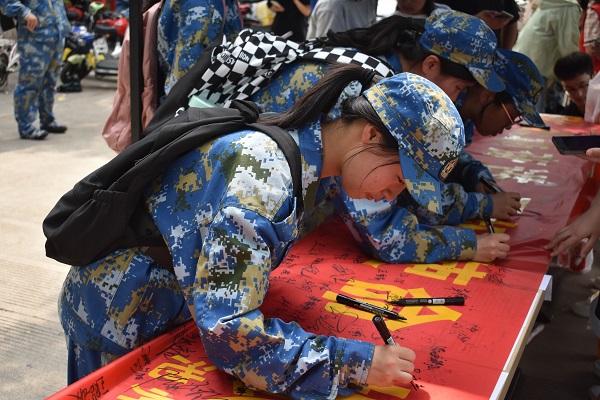 上午9点,伟德国际1946bv官网在学校一食堂门口启动“铸国魂,树豪情壮志”条幅签字仪式。同学们在条幅上郑重签名,表达牢记历史,居安思危。活动中同学们表示一定不忘国耻、珍爱和平、勤奋学习,牢记时代赋予的责任和使命,以实际行动建设祖国、报效祖国。